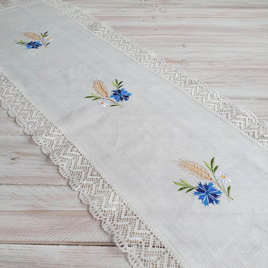 Table runner with embroidery CORNFLOWER