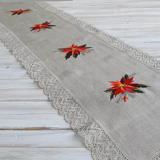 Table runner with lace CHRISTMAS FLOWER